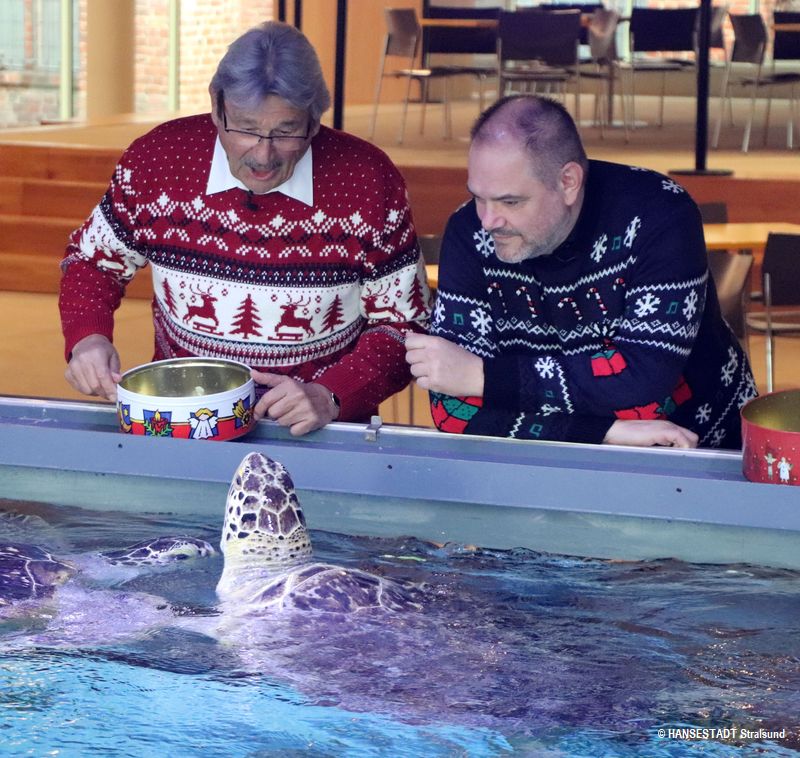 die Weihnachtszeit lädt dazu ein, innezuhalten, zurückzublicken und zugleich hoffnungsvoll nach vorn zu schauen. Unsere diesjährigen Weihnachtsgrüße kommen aus dem Deutschen Meeresmuseum – einem Ort, der Ruhe, Wissen und Fürsorge miteinander verbindet. In vorweihnachtlicher Atmosphäre haben wir dort nicht nur gestaunt, sondern auch tatkräftig mit angepackt: geputzt, Schildkröten gefüttert und ein wenig festlichen Glanz verbreitet. Ein wundervoller Ort, der uns zeigt, wie wichtig Verantwortung und gemeinsames Handeln sind. Ein Besuch zwischen den Jahren – und darüber hinaus – lohnt sich!