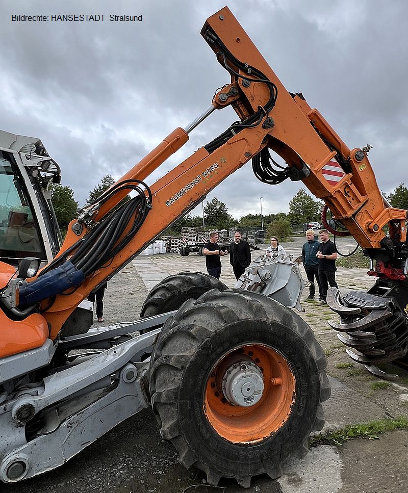 Der Baumdienst Nord – geführt von den drei Bornhöft-Brüdern Max, Jan und Ben – ist weit mehr als ein klassischer Betrieb für Baumfällungen und -pflege. Oberbürgermeister Alexander Badrow machte sich bei einem Unternehmensbesuch jetzt ein Bild vor Ort. Was er sah: ein Unternehmen, das Handwerk, Nachhaltigkeit und innovative Ideen vereint.
